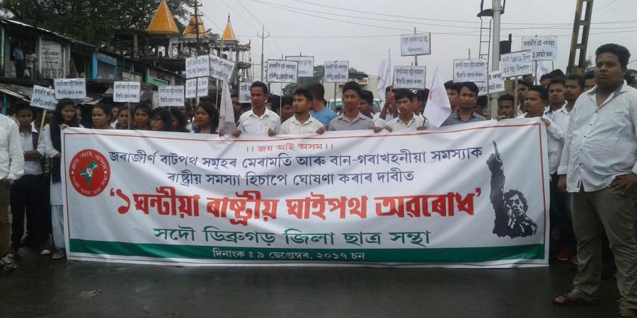 আজি সদৌ ডিব্ৰুগড় জিলা ছাত্ৰ সন্থাই চাবুৱাৰ চাৰিআলিত ৩৭ নং ৰাষ্ট্ৰীয় ঘাইপথ অৱৰোধ কৰি উত্তাল প্ৰতিবাদ সাব্যস্ত কৰে। সংগঠনটোৱে বিজেপি চৰকাৰ হায় হায়, ৰাষ্ট্ৰীয় ঘাইপথ অতি সোনকালে মেৰামতি কৰক, মুখ্যমন্ত্ৰী হায় হায় আদি শ্ল’গানেৰে প্ৰায় ১ ঘন্টা ঘাইপথ অৱৰোধ কৰে।
