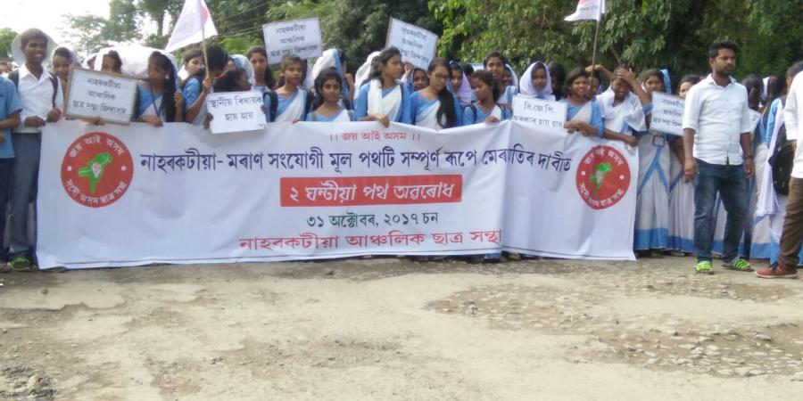 নাহৰকটীয়াঃ নাহৰকটীয়াত মঙলবাৰে পথ মেৰামতিৰ দাবীত উত্তাল প্ৰতিবাদ সাব্যস্ত কৰে আছুৱে৷ পৰিবৰ্তনৰ শ্ল’গান দি শাসনৰ গাডীত বহা চৰকাৰ খনে পৰিবৰ্তন কৰিব নোৱাৰাৰ অভিযোগ উত্থাপন কৰি পথ অৱৰোধ কৰি প্ৰতিবাদ সাব্যস্ত কৰে সংগঠনটোৱে৷
