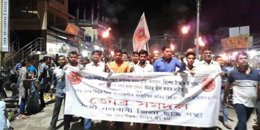 নলবাৰীঃ ৰাজ্য চৰকাৰৰ বিৰুদ্ধে আছুৱে জোঁৰ সমদল উলিয়ায় প্ৰতিবাদ সাব্যস্ত কৰে৷ চৰকাৰে ১৯৭১ চনৰ পিছত অহা হিন্দু বাংলাদেশীক অসমত সংস্থাপন কৰিব বিছৰাৰ বিৰুদ্ধে নলবাৰী জিলা ছাত্ৰ সন্থাই নলবাৰীৰ চহৰত জোঁৰ লৈ সমদল উলিয়ায় উত্তাল কৰে নলবাৰীৰ আকাশ-বতাহ৷