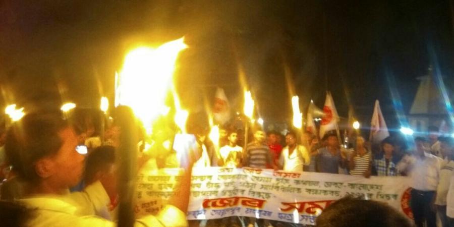তামুলপুৰ মহকুমা ছাত্ৰ সন্থাৰ আহ্বানত ওলাই অহা কেইবা শতাধিক লোকে জোৰ সমদল কাৰ্যসূচীত অংশ গ্ৰহণ কৰি ভাৰত বাংলাদেশ সীমান্ত ছীল কৰক, বিদেশী বহিস্কাৰ কৰক, ১৯৭১ চনৰ পাছৰ হিন্দু বাংলাদেশীক সংস্থাপন দিব দিয়া নহ’ব, সৰ্বানন্দ সোণোৱাল মুৰ্দাবাদ, অসম চৰকাৰ হায় হায় শ্ল’গান দি আকাশ-বতাহ কপাই তোলে।