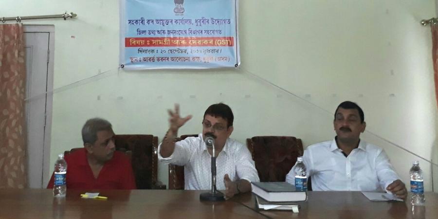 ধুবুৰী জিলা সহকাৰী আয়ুক্ত গৰাকীয়ে সামগ্ৰী আৰু সেৱা কৰ আইনৰ বিভিন্ন দিশৰ সহজ ব্যাখ্যা দাঙি ধৰি কয় য়ে জি এছ টি দৰাচলতে এখন ভাল আৰু সৰল আইন। এই আইনৰ দ্বাৰা দেশত চলি থকা ফাঁকি বন্ধ কৰিব পৰা যাব বুলি দাবী কৰি বিষয়া গৰাকী কয় যে আৰম্ভণিতে সকলোৰে মনত কিছু দিধা শক্ষা বা সন্দেহ থাকিলেও লাহে লাহে ই সহজ সৰল হৈ পৰিছে।