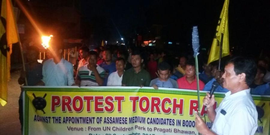 কোকৰাঝাৰঃ বড়ো মাধ্যমৰ বিদ্যালয়সমূহত অসমীয়া মাধ্যমৰ শিক্ষকক নিযুক্তি দিয়াৰ অভিযোগ তুলি নিখিল বড়ো ছাত্ৰ সন্থা চমুকৈ এবছুৱে আজি সন্ধিয়া কোকৰাঝাৰত জোৰ লৈ সমদল বাহিৰ কৰে৷