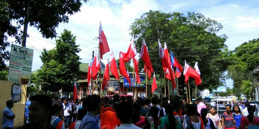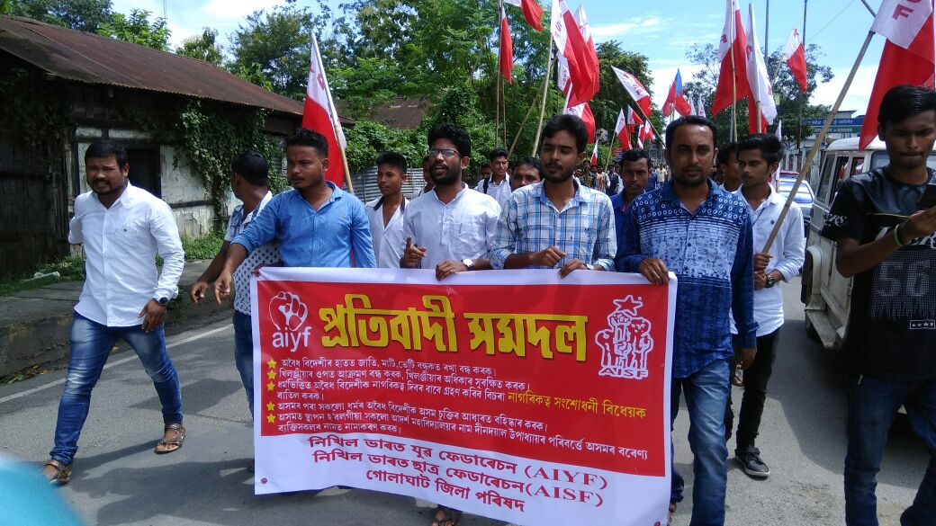এআইএছএফৰ জিলা সভাপতি যদু বৰা, সম্পাদক অভিজিত দুৱৰা, এআইৱাইএফৰ জিলা সভাপতি পৰাগ বৰা, সম্পাদক হেমন্ত গগৈৰ নেতৃত্বত ছাত্ৰ-যুৱ কৰ্মী সকলে এক সমদল উলিয়ায় গোলাঘাট চহৰত।