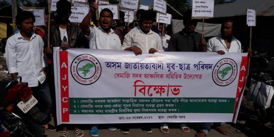 অসম জাতীয়তাবাদী যুৱ ছাত্ৰ পৰিষদ ধেমাজি সদৰ আঞ্চলিক সমিতিয়ে বজাৰৰ মাজমজিয়াত নগৰ সমিতিৰ বিৰুদ্ধে ধেমাজি নগৰৰ আৱৰ্জনা সাপ্তাহিক বজাৰৰ চৌহদৰ পৰা শীঘ্ৰে আতঁৰাই পৰিস্কাৰ কৰা, ধেমাজি নগৰৰ নলা নৰ্দমা বিজ্ঞানসন্মতভাৱে নিৰ্মাণৰ ব্যৱস্থা কৰা, বজাৰৰ খাদ্য সামগ্ৰী নিৰ্দ্ধাৰিত মূল্য নিৰূপনৰ ব্যৱস্থা কৰা, নগৰ খনৰ যান-জোঁটৰ সমস্যা দূৰ কৰাৰ দাবীত বিক্ষোভ কাৰ্যসূচীৰে পৰিবেশ উত্তাল কৰি তোলে। কাৰ্যসূচীত জিলা সমিতিৰ ভাৰপ্ৰাপ্ত সভাপতি প্ৰিয়াংকু চুতীয়া, সাধাৰণ সম্পাদক বিষ্ণু শৰ্মা, উপদেষ্টা বিপুল চাংমাই, সাংস্কৃতিক সম্পাদক পুলেন দাস, সদৰ আঞ্চলিক সমিতিৰ সভাপতি ভুপেন দিহিঙীয়া, সাধাৰণ সম্পাদক দেৱজিৎ চুতীয়াকে ধৰি পৰিষদৰ শতাধিক কৰ্মী উপস্থিত থাকে৷