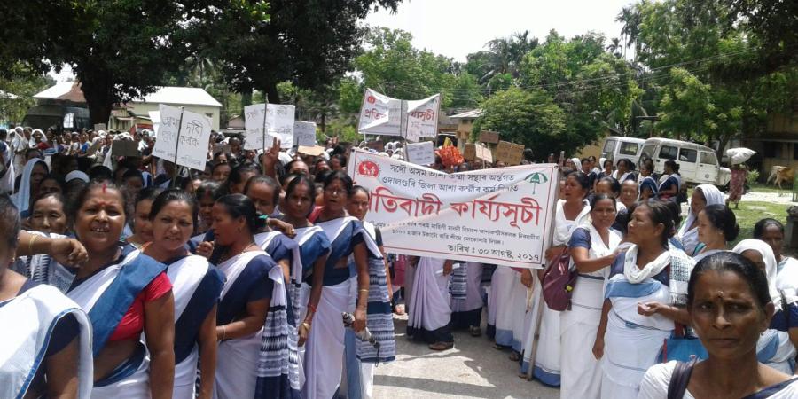 জিলা খনৰ শ শ আশাকৰ্মীয়ে চৰকাৰ বিৰুদ্ধে ক্ষোভ পৰ্কাশ কৰে ৷ হিমন্ত বিশ্ব হায় হায়, হিমন্ত বিশ্ব মুৰ্দাবাদ শ্ল’গানেৰে সমদল উলিয়াই উত্তাল কৰে ওদালগুৰি চহৰ৷ ২০১৩ চনৰ পৰাই মাহিলী এহেজাৰ টকাকৈ মাননী প্ৰদান কৰিম বুলি ৰাজ্য চৰকাৰখনে ঘোষণা কৰিছিল যদিও বিগত পাঁচটা বছৰে এটকাও মাননী চৰকাৰে প্ৰদান নকৰাত ক্ষোভত ফাটি পৰে কৰ্মীসকল।