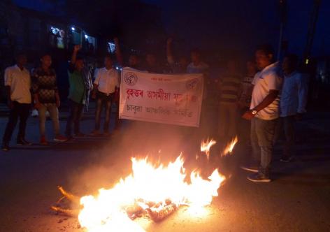 গামোচা দাহ কৰা কাৰ্যৰ প্ৰতিবাদ অসমীয়া যুৱ মঞ্চৰ