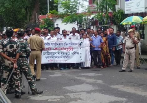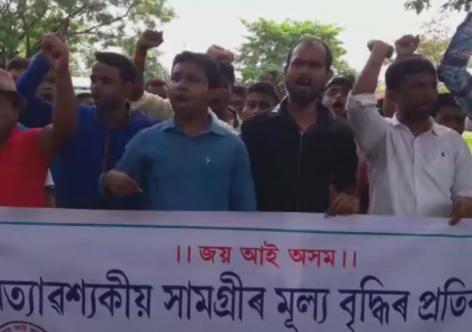 মহানগৰীত যুৱ ছাত্ৰ পৰিষদৰ মূল্যবৃদ্ধিৰ প্ৰতিবাদ
