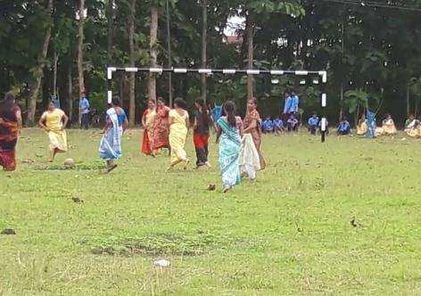 চাদৰ মেখেলা, শাৰী পিন্ধি শিক্ষয়ত্ৰী নামিল ফুটবল প্ৰতিযোগিতাত