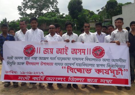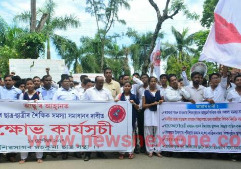 শৈক্ষিক সমস্যা সমাধানৰ দাবীত শিৱসাগৰত আছুৰ বিক্ষোভ
