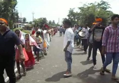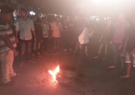 দেৰগাঁৱত পথত টায়াৰ জ্বলাই অখিলক গ্ৰেপ্তাৰৰ প্ৰতিবাদ