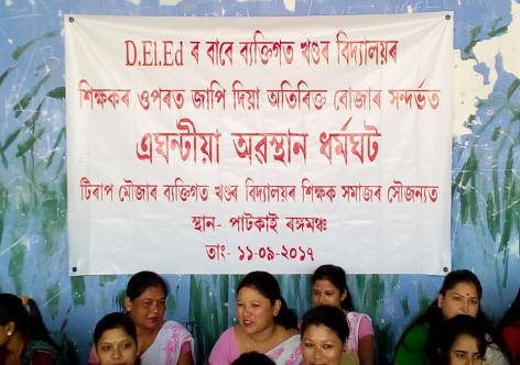 শ্ৰেণীকোঠা এৰি মাৰ্ঘেৰিটাত শিক্ষকৰ প্ৰতিবাদ