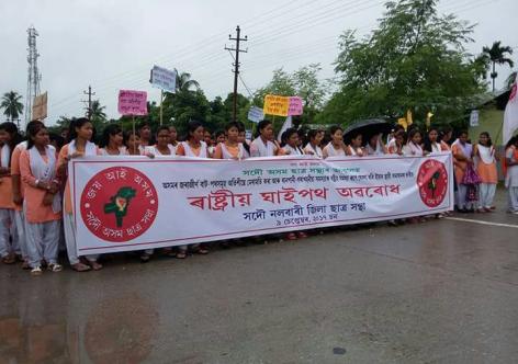 নলবাৰী জিলা ছাত্ৰ সন্থাৰ ৰাষ্ট্ৰীয় ঘাইপথ অৱৰোধ