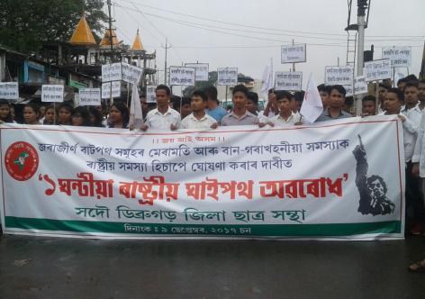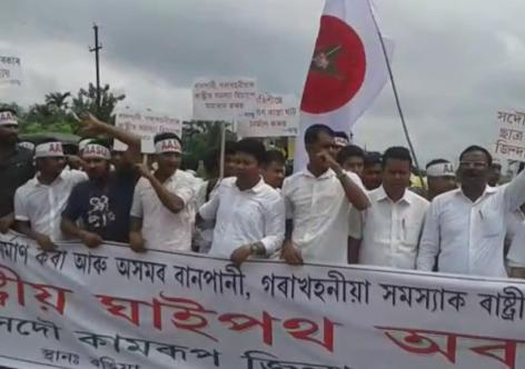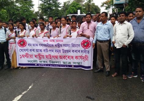 সদৌ দৰং জিলা ছাত্র সন্থাৰ ৰাষ্ট্ৰীয় ঘাইপথ অৱৰোধ