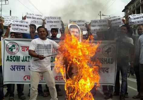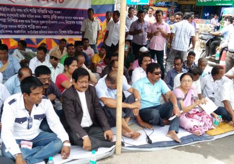 নগাঁৱত অসম গণ পৰিষদ আৰু অসম যুৱ পৰিষদৰ অৱস্থান ধৰ্মঘট