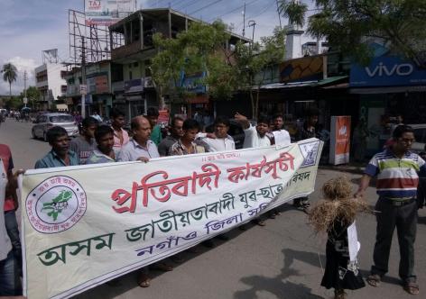 নগাঁৱত পেট্ৰলজাত সামগ্ৰীৰ মূল্য বৃদ্ধি ৰোধৰ দাবীত যুৱ ছাত্ৰ পৰিষদৰ প্ৰতিবাদ
