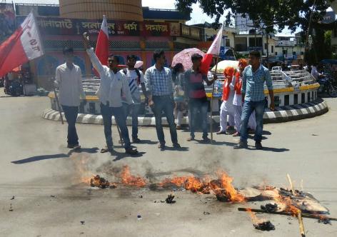 গোলাঘাটত শিক্ষামন্ত্ৰীৰ প্ৰতিকৃতি দাহ