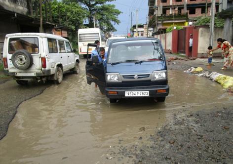 ৰাষ্ট্রীয় ঘাইপথৰ বোকাত সোমাল গাড়ী
