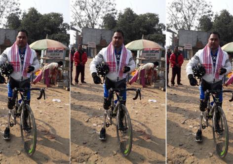 ভৰি এখন, গঁড় হত্যা ৰোধৰ বাৰ্তা লৈ ৩৫০০ কিঃ মিঃ চাইকেল চলাই আহিল ৰাকেশে