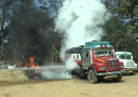 দাউ দাউকৈ জ্বলিল পাৰ্কিংত ৰখাই থোৱা তেল পৰিবাহী টেংকাৰ