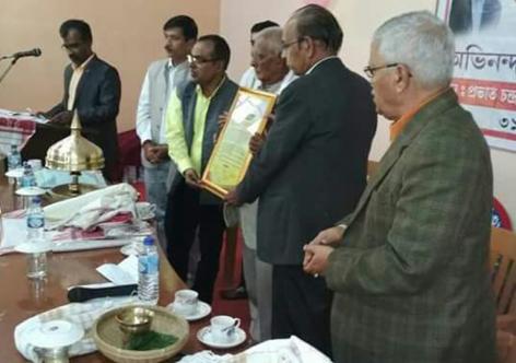 শিক্ষাবিদ প্ৰভাত চন্দ্ৰ শৰ্মাক সম্বৰ্ধনা যাচিলে নলবাৰীবাসীয়ে