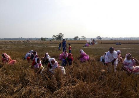 শংকৰদেৱ সংঘৰ অধিবেশন, কাঁচি হাতত লৈ পথাৰত ব্যস্ত মহিলা
