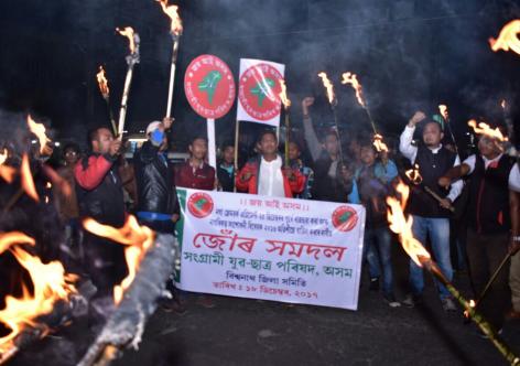 সৰুপথাৰত চাহ জনজাতি ছাত্ৰ সন্থাৰ উত্তাল প্ৰতিবাদ