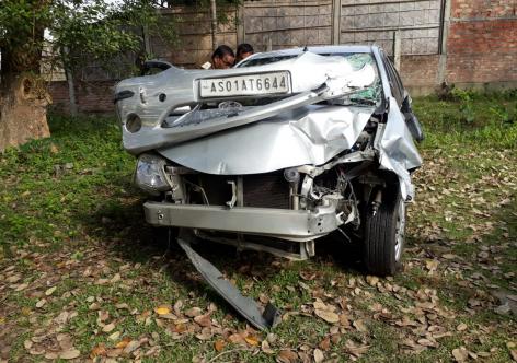 পথৰ দাতিৰ গছত ট্ৰাকৰ খুন্দা, গাড়ীৰ ভিতৰত চটফটাই প্ৰাণ গ'ল এজনৰ, আহত ১