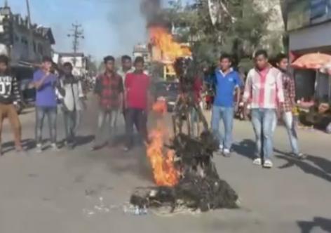 আমগুৰিৰ ৰাজ পথত জ্বলিল সৰ্বা-প্ৰমীলাৰ প্ৰতিকৃতি