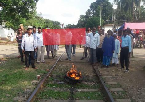 কামপুৰত কৃষক মুক্তি-ছাত্ৰ মুক্তিৰ ৰেলপথ অৱৰোধ