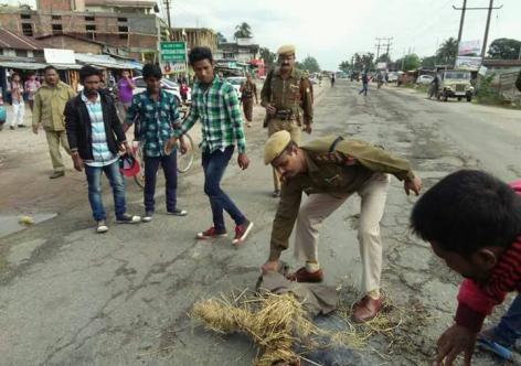 বিহালীত মুখ্যমন্ত্ৰীৰ প্ৰতিকৃতি দাহ কৃষক মুক্তি-ছাত্ৰ মুক্তিৰ
