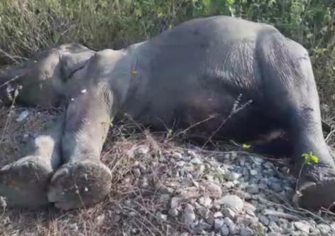 নৈৰ পাৰত চটফটাইছে এটি বনৰীয়া হাতীয়ে, শুই আছে বন বিভাগ