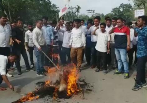 সাপেখাতীৰ ৰাজ পথত আছুৱে দাহ কৰিলে স্বাস্থ্য মন্ত্ৰী হিমন্তৰ প্ৰতিকৃতি