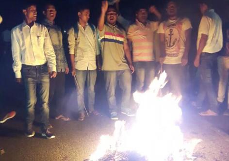 ধেমাজিত আৰ্শ্বাদ মাদানীৰ প্ৰতিকৃতি দাহ কৰিলে যুৱ-ছাত্ৰ পৰিষদে