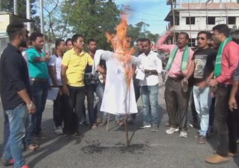 জ্বলিব-জ্বলাব-মাৰিব-মৰিব, ৰাজ পথত জ্বলিল আৰ্শ্বাদ মাদানীৰ প্ৰতিকৃতি