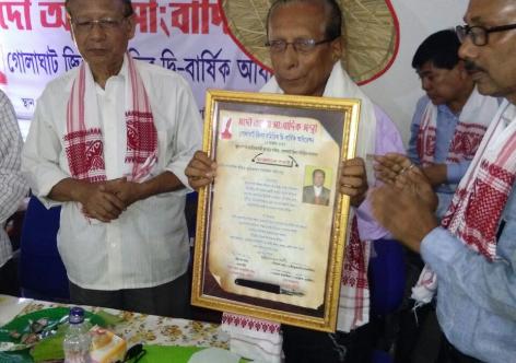প্ৰবীণ সাংবাদিক মহেন্দ্রনাথ হাজৰিকাক সম্বৰ্ধনা সদৌ অসম সাংবাদিক সন্থাৰ