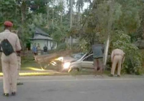 বিজেপি নেতাৰ গাড়ীৰ খুন্দাত উঘালি পৰিল প্ৰকাণ্ড গছ