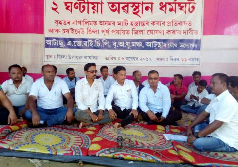 ভগ্নী ৰাজ্যৰ কেঁকোৰা চেপাত অসমৰ মানচিত্ৰ সংকুচিত হৈছে, চৰাইদেউত প্ৰতিবাদ