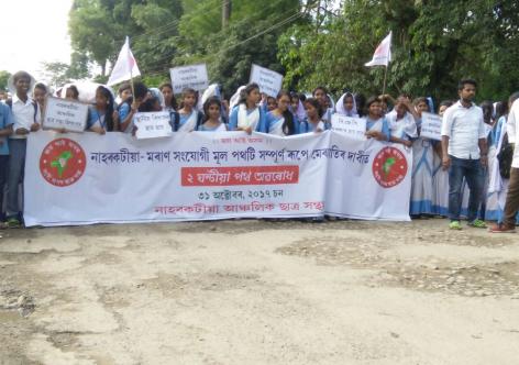 পথ মেৰামতিৰ দাবীত নাহৰকটীয়াত আছুৰ পথ অৱৰোধ