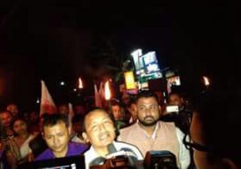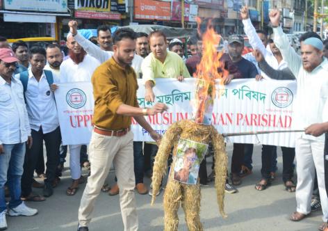 উজনিৰ ৰাজ পথত জ্বলিল বহুবল্কী শিলাদিত্যৰ প্ৰতিকৃতি
