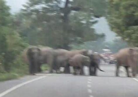 বনৰীয়া হাতীয়ে আৱদ্ধ কৰি ৰাখিলে ৰঙিয়া-ভূটান ঘাই পথ