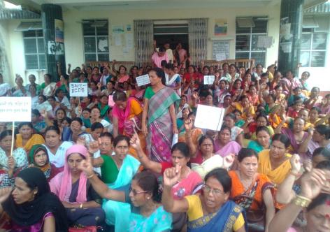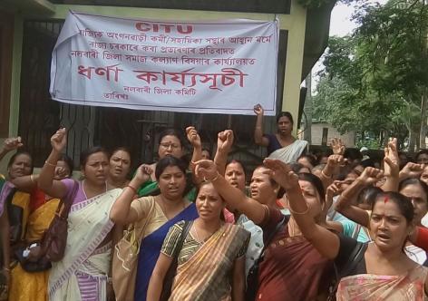 নলবাৰীত অংগনবাড়ী কৰ্মী-সহায়িকাৰ উত্তাল প্ৰতিবাদ, চৰকাৰৰ বিৰুদ্ধে ক্ষোভ