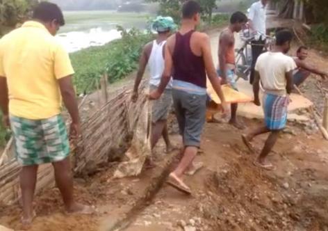 ৰাইজে শ্ৰমদানেৰে নিৰ্মাণ কৰিলে গৌৰীপুৰৰ আশাৰীকান্দি-ঘ্যাগেৰ আলগা পথ