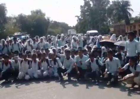 শ্ৰেণী কোঠা এৰি ৰাজপথত বহিল ছাত্ৰ-ছাত্ৰী