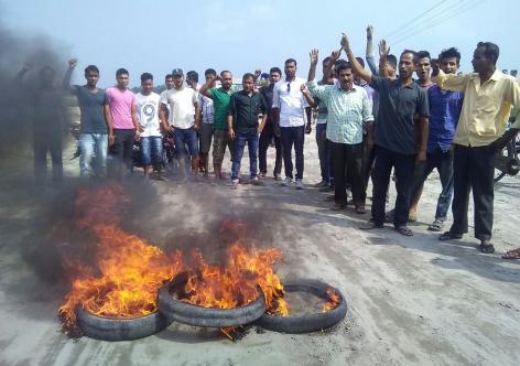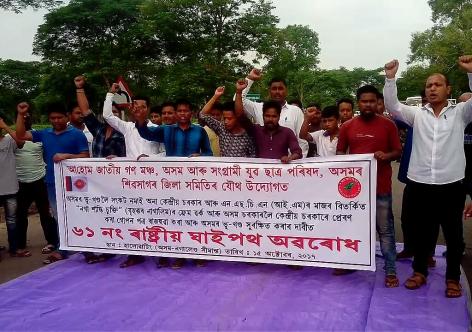 আমগুৰিত দুই সংগঠনৰ পথ অৱৰোধ