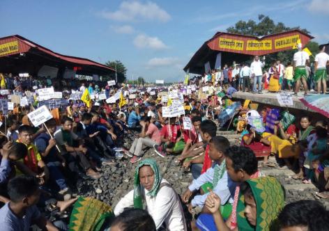 ঢেকিয়াজুলিত আবছু প্ৰতিবাদকাৰীৰ ৰেল অবৰোধ