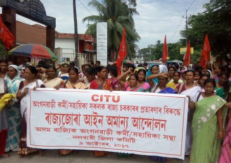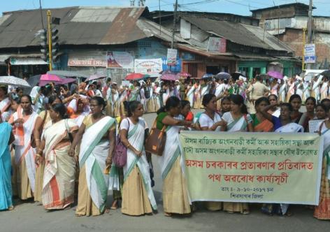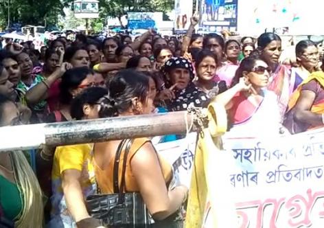 প্ৰাপ্যৰ আশাত তেজপুৰত অংগনবাড়ী সহায়িকাৰ প্ৰতিবাদ