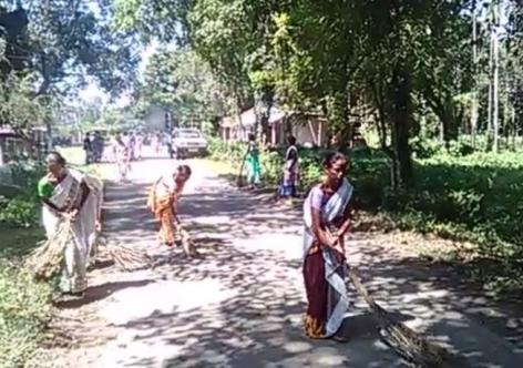 নলবাৰীত মহিলাৰ হাতে হাতে ঝাড়ু