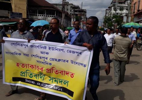 সাংবাদিক হত্যাৰ প্ৰতিবাদত তেজপুৰত তিনি সংগঠনৰ শোভাযাত্ৰা