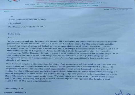 অস্ত্ৰ পূজন, আৰএছএছৰ বিৰুদ্ধে কেএমএছএছৰ এজাহাৰ