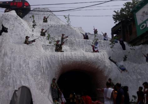 চার্জিকেল ষ্ট্ৰইকৰ আৰ্হিত হোজাইত পূজা মণ্ডপ